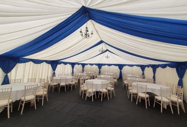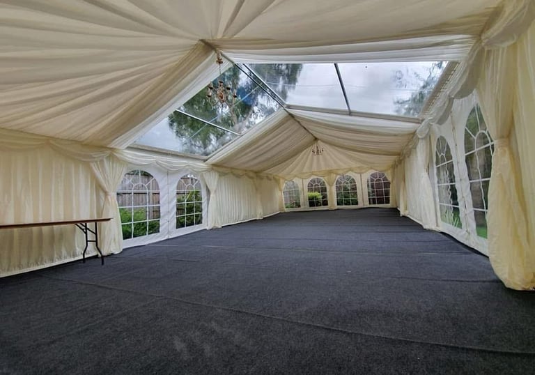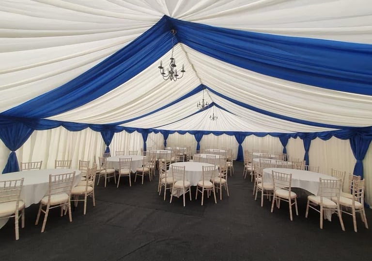 We offer a variety of drapes and swags in different colors to complement your event’s theme. Our elegant linings can transform your marquee, creating a stunning atmosphere for any occasion. Get in touch with us to explore our options and bring your vision to life