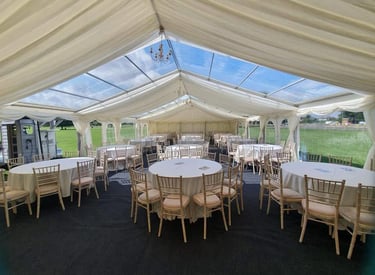 "I recently hired Lodge Farm Marquees for my wedding, and I couldn't have been happier with their service! From the initial consultation to the final takedown, they were professional, helpful, and really went the extra mile to make sure everything was perfect. The marquee itself was beautiful and exactly what we'd envisioned. It created the perfect atmosphere for our reception. The team was also incredibly efficient with setup and takedown, which took a huge weight off my shoulders. I highly recommend lodge farm marquees to anyone looking for a reliable and high-quality marquee hire service."